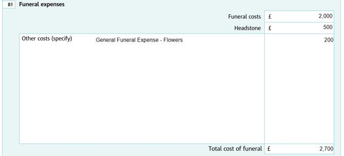 💁♂️ Funeral expenses will be pulled through to the relevant fields within IHT and Court forms