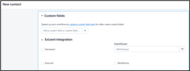 - In your Clio matter, ensure the related contacts are using the custom fields to flag if each contact is the deceased, executor or beneficiary: